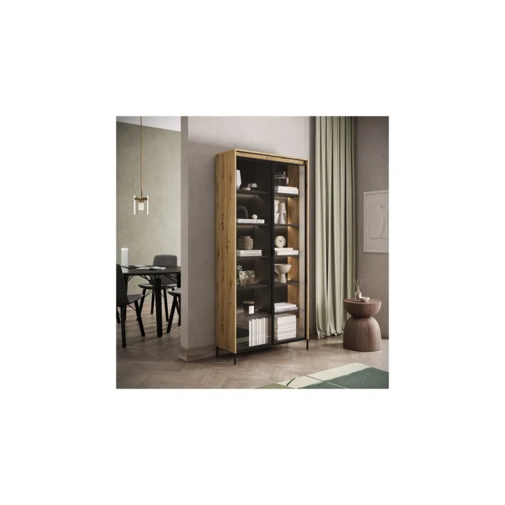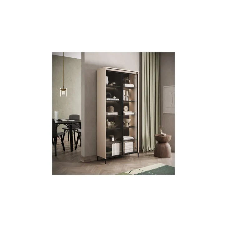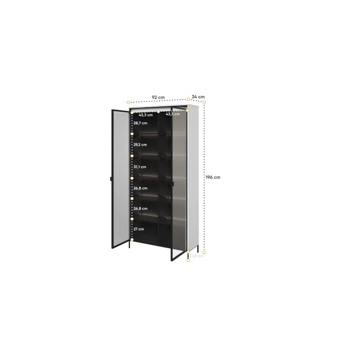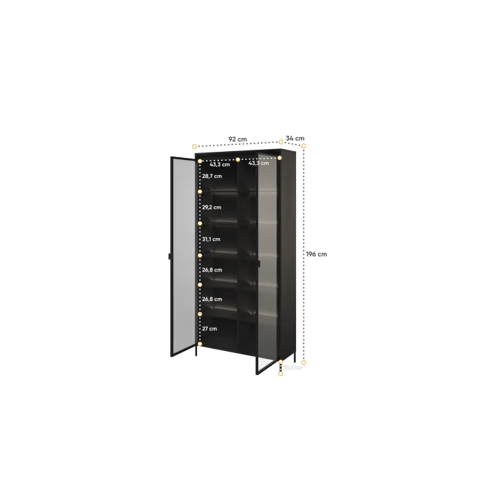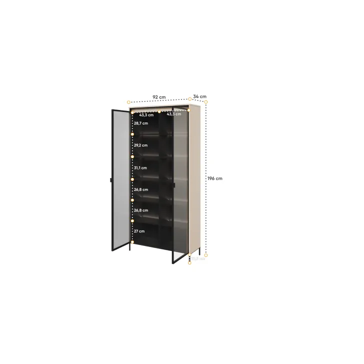 Wysoka witryna "TREVIOLO" to wyjątkowy mebel, który wniesie niepowtarzalny styl do każdego pomieszczenia. Wyróżnia się swoją nowoczesnością i elegancją, jednocześnie zapewniając mnóstwo praktycznego miejsca do przechowywania. Witryna "TREVIOLO" to doskonałe połączenie funkcjonalności i wyrafinowanego designu.
