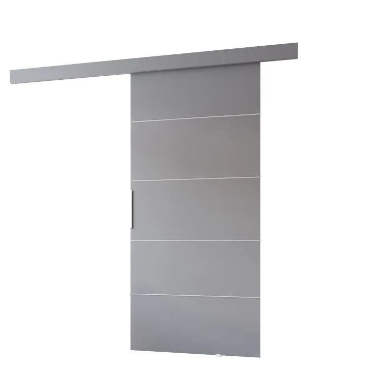Design tych drzwi przesuwnych podkreślany jest przez srebrne listwy ozdobne umieszczone z jednej strony frontu.