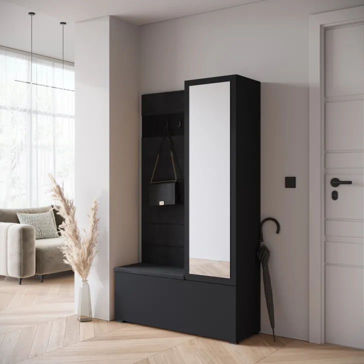 Dostępna w kolorach: Czarny, Biały, Dąb Wotan. Zaaranżuj przestrzeń swojego przedpokoju z garderobą "TOKAT" i ciesz się jej niesamowitą funkcjonalnością każdego dnia!