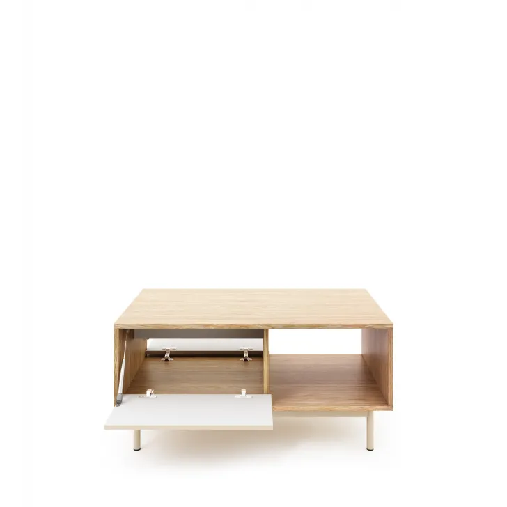 Został on zaprojektowany z myślą o dbałości o detale. Stolik LITA 5 posiada ukryty schowek za drzwiczkami, który jest wyposażony w system klapy. Dzięki temu dostarcza miejsca do przechowywania różnych drobnostek, które chcemy mieć zawsze pod ręką, ale niekoniecznie na widoku. Obok schowka znajduje się otwarta półka, na której można w wygodny sposób odłożyć książkę, pilot do telewizora lub inny drobiazg.