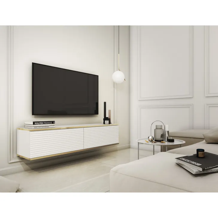 Komfort, styl i jakość nadają dekoracyjny smak dla twojego domu dzięki Szafce RTV "ORO" 135 cm z frontami MDF. Ten luksusowy mebel jest nie tylko piękny, ale też praktyczny, spełniający wszystkie twoje potrzeby związane z przechowywaniem urządzeń RTV.