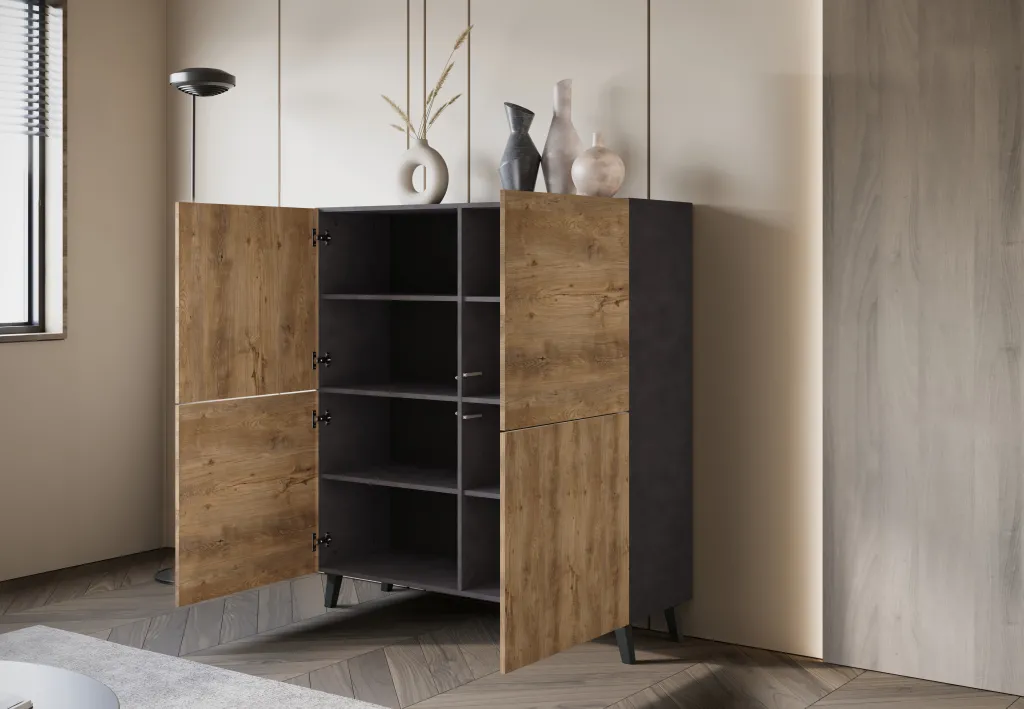 Wysoka komoda LOKET to uniwersalność i klasa, która zachwyca.